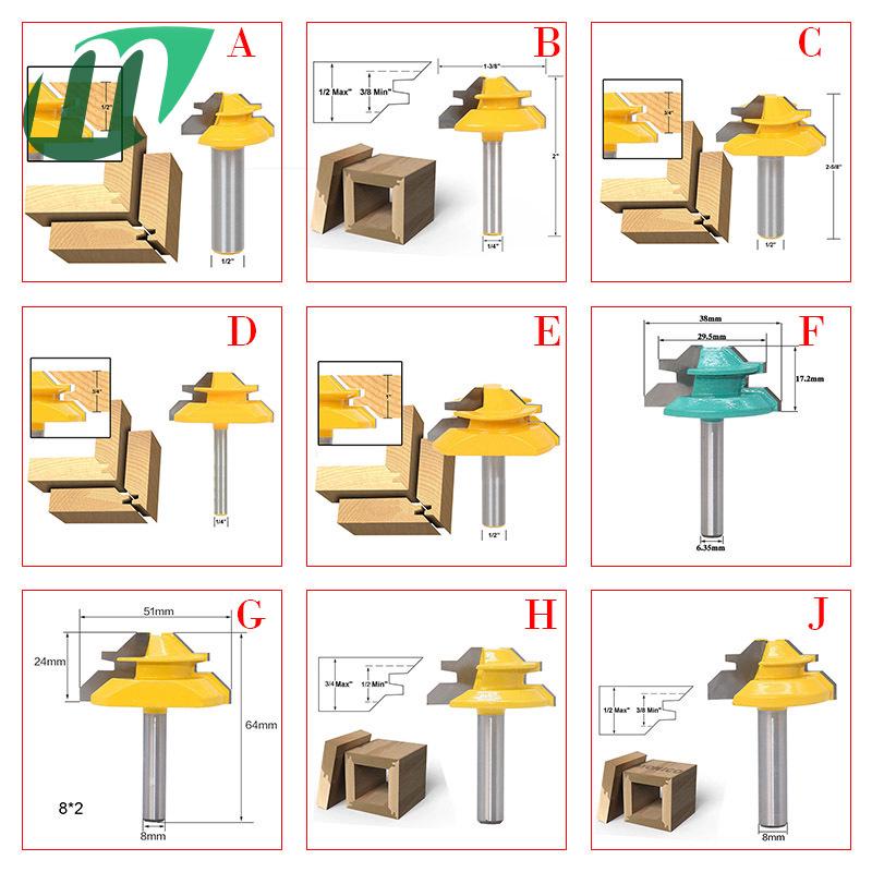 45 Degree Shank Lock Miter Router Bit Tungsten Woodworking